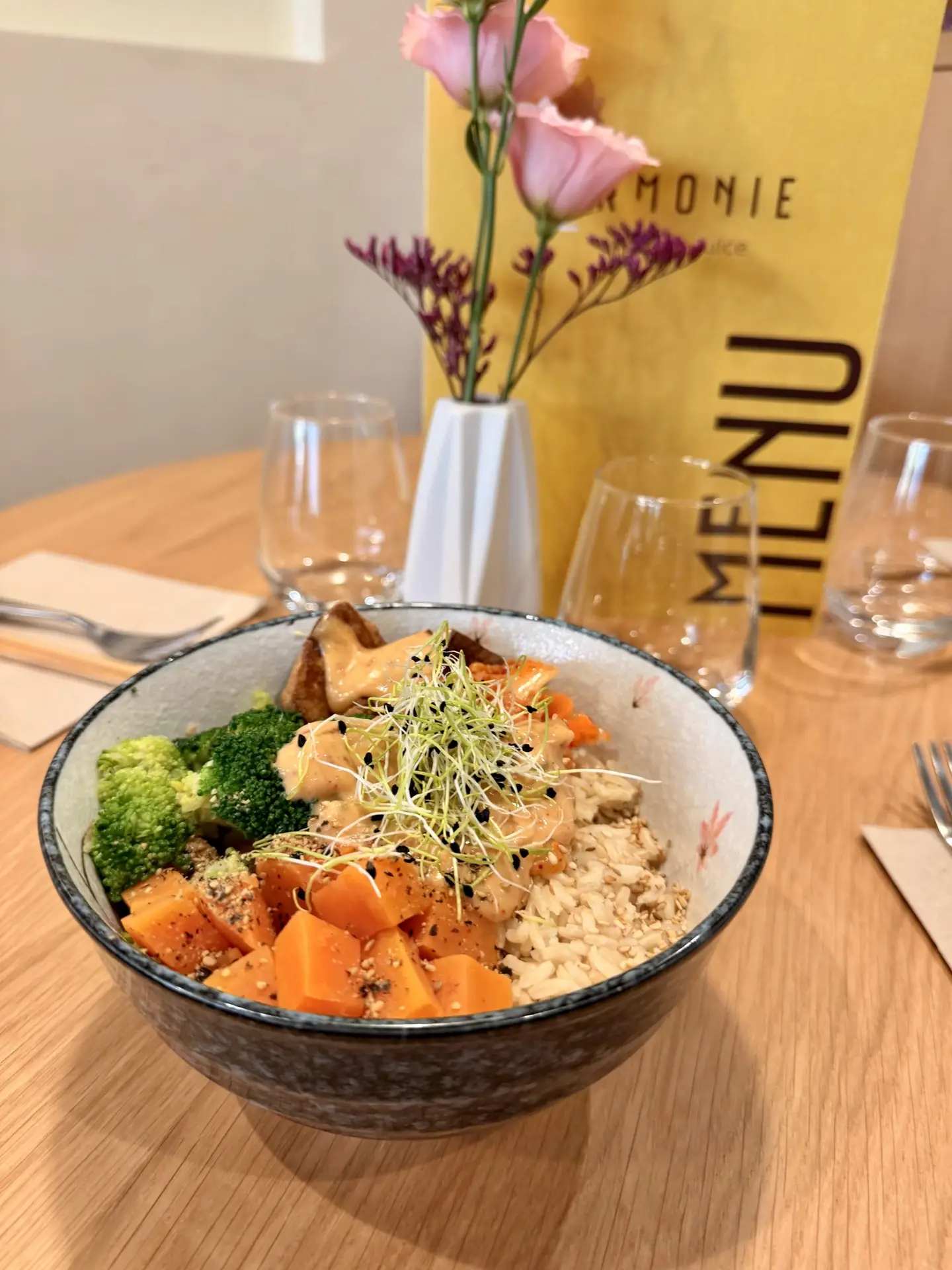 Des emblématiques Harmonie Bowls aux autres spécialités aux influences asiatiques, découvrez une cuisine végétale et saine qui vous régale de l’entrée au dessert.
